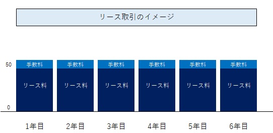 こちらの上記の例を同じ300万円の車を6年でリースした場合の具体例を見ていきましょう。