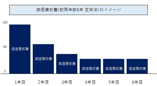 耐用年数というのは資産ごとに国税庁によって「この資産なら通常このくらいの期間は利用可能だよね」と決められている期間です。耐用年数の6年が経過すれば購入価額の全額が経費に算入されます。
